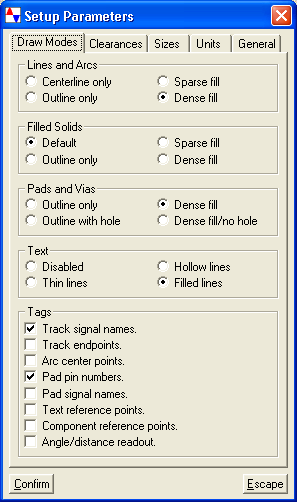The Draw Modes tab controls the display formats for the various primitive elements.