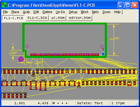 from the CIRCAD user definable library, a schematic can be made that CIRCAD can then use to create a PCB file with all of the components lined up along