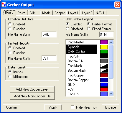 This group controls the creation of the Drill Symbol Legend output file.