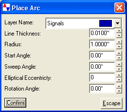 When you select this function, a dialog box will appear which will prompt you to enter the several parameters needed for the construction of the desired arc.