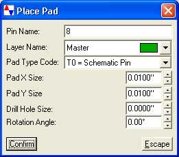 The default pad placement parameters are re-loaded each time you edit an existing pad. This feature aids in replication of existing data structures.